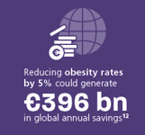 New tools and new thinking can ensure that Europe responds in a sustainable way to this major challenge. The benefits of tackling obesity are enormous: reducing obesity rates by 5% could generate €396 billion in global annual savings – and will save lives [xii].